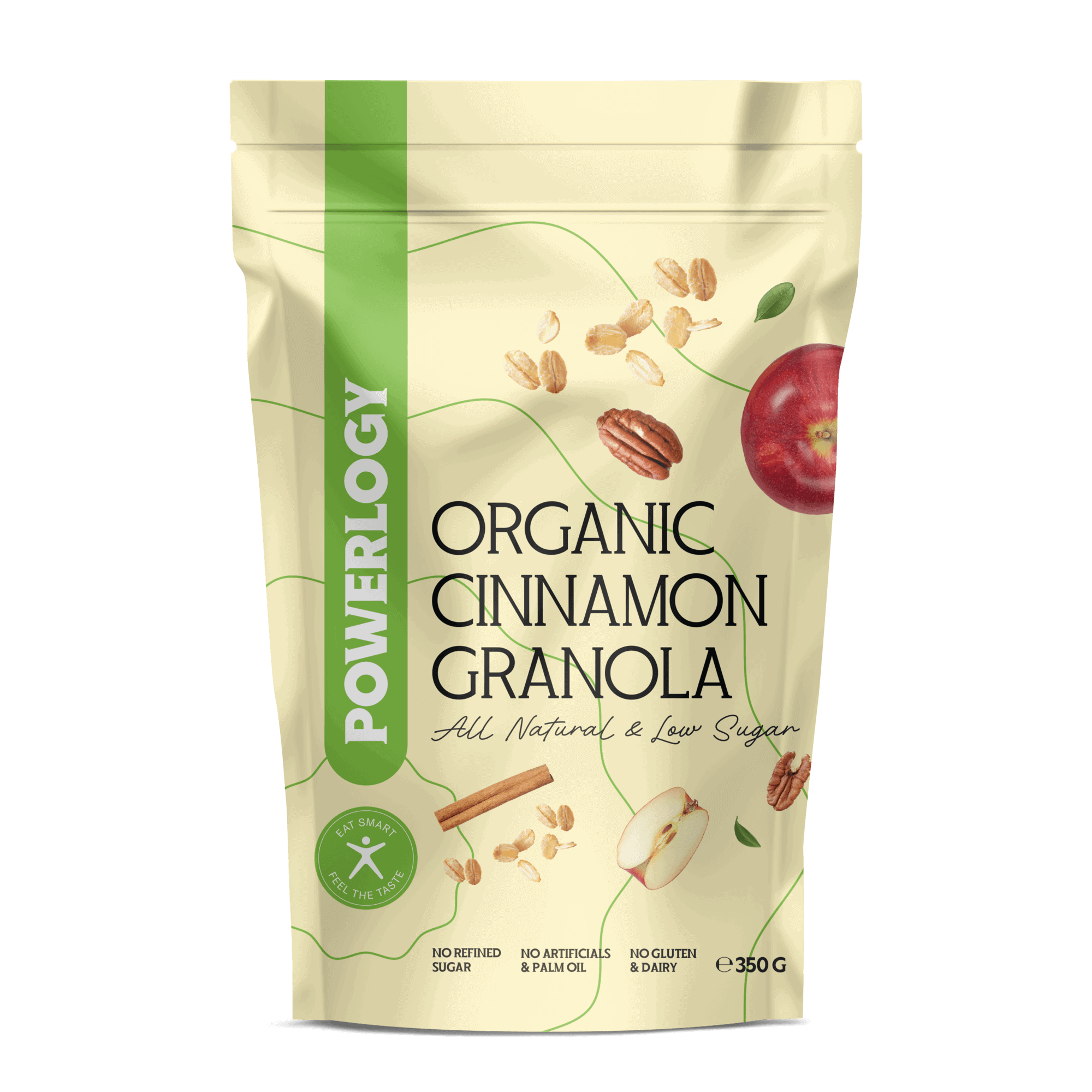 Harmonii čisté chuti jsme dosáhli výběrem přírodních ingrediencí. Vločky křupou díky šetrnému pečení teplým vzduchem. V kombinaci s javorovým sirupem a skořicí má granola sladkou karamelovou dochuť. Tyto snídaně či rychlý snack si vás podmaní chutí pekanových ořechů, voňavé skořice a sušených jablek.
