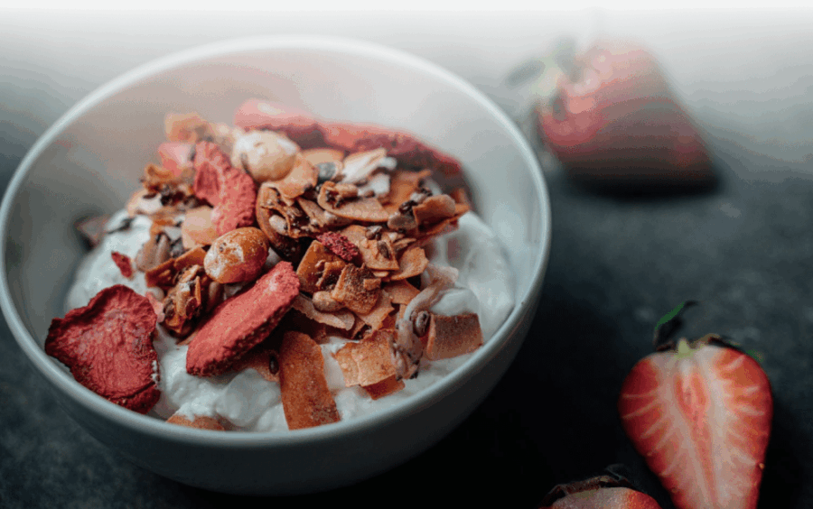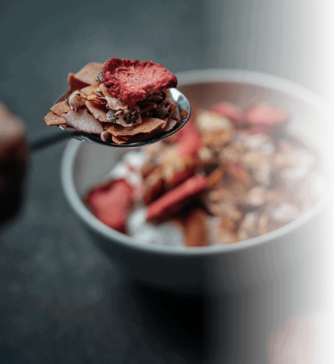 • Snadné trávení a skvělá chuť zdravých snídaňových „necereálií“ s jahodami.
