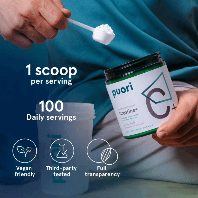 Puori Creatine obsahuje pouze čistý kreatin monohydrát a taurin, bez přidaných barviv, sladidel nebo jiných nežádoucích látek. Produkt je bez lepku, laktózy a vhodný pro vegetariány.