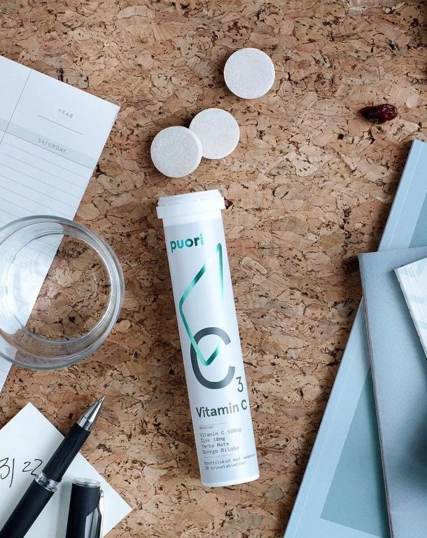 Puori C3 obsahuje vitamín C z přírodních zdrojů, jako jsou šípky, goji a acerola. Nápoj je ochucen extraktem z manga a pomeranče a slazen stévií. Pomalé rozpouštění je dosaženo použitím inulinu a přírodních škrobů namísto umělých chemických látek.