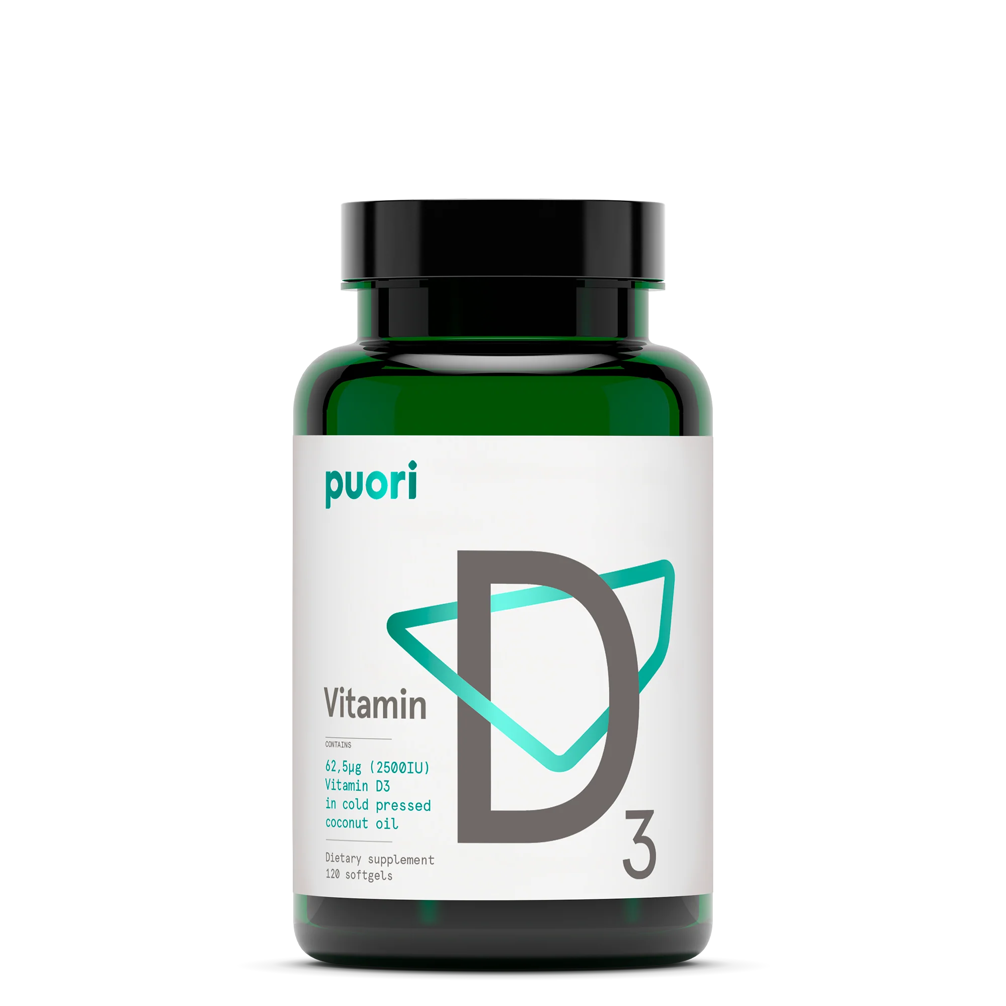 Puori D3 obsahuje vitamín D3 získaný z lanolinu, přírodní složky ovčí vlny, a je smíchán s organickým panenským kokosovým olejem pro lepší vstřebatelnost. Produkt neobsahuje umělé přísady a je vhodný pro vegetariány.
