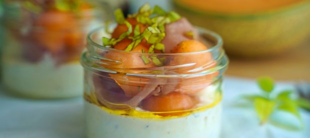 Raňajkové kurkumové chia poháre s chrumkavou čokoládou