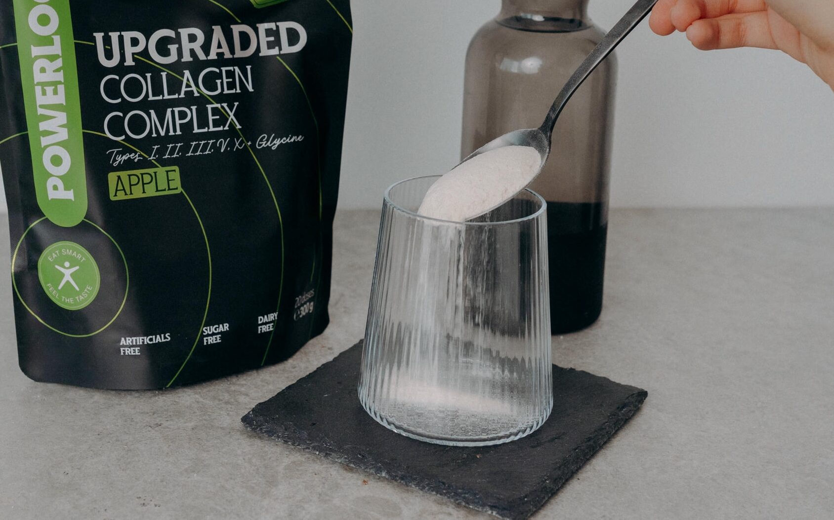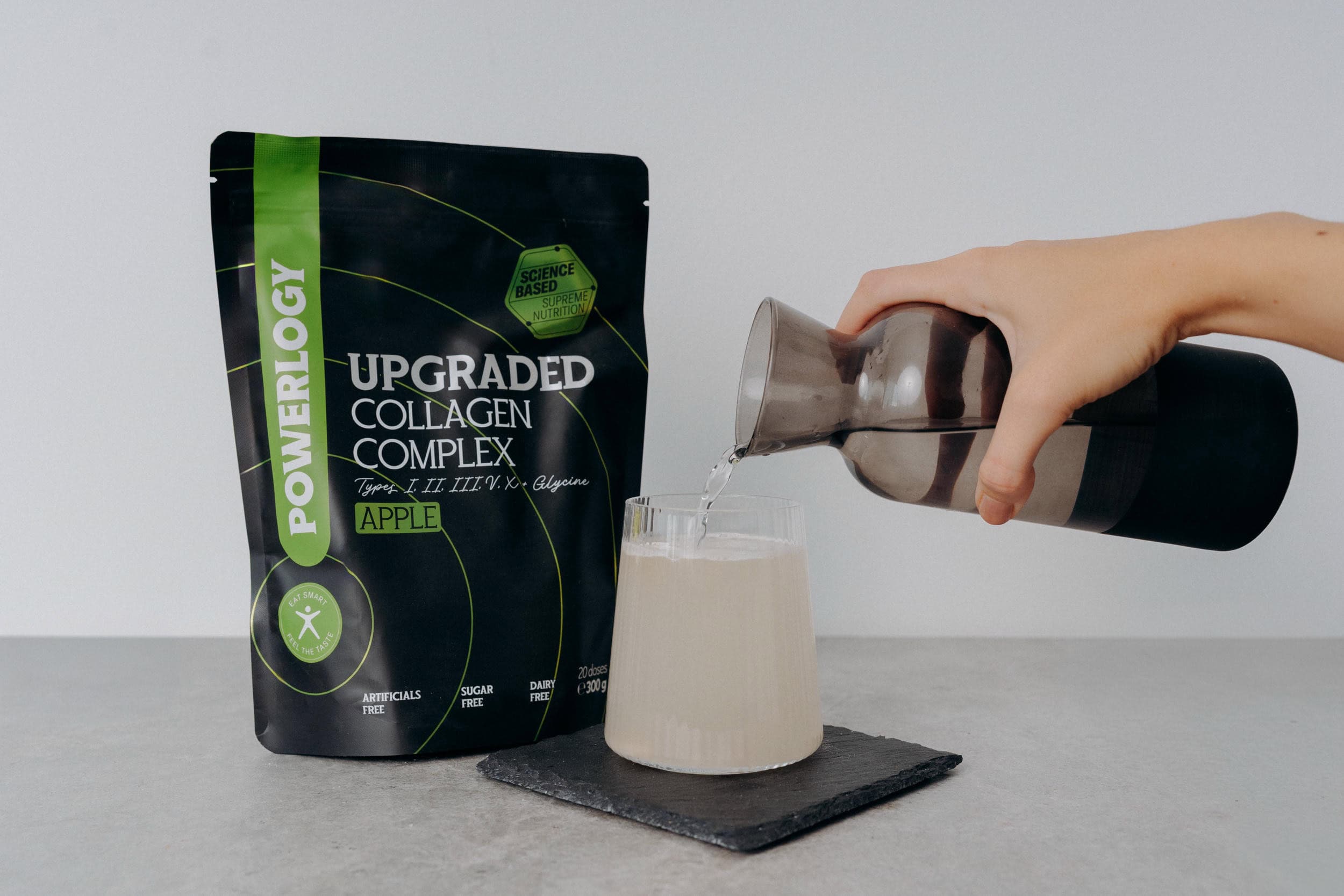 V první řadě nedám dopustit na kvalitní, 100% kolagen v prášku, u kterého oceňuji jeho rozpustnost a neutrální chuť. Nejraději si ho vychutnávám ve sklenici čisté vody ráno po probuzení, během náročných dní natáčení nebo v divadle v oblíbené kávě.