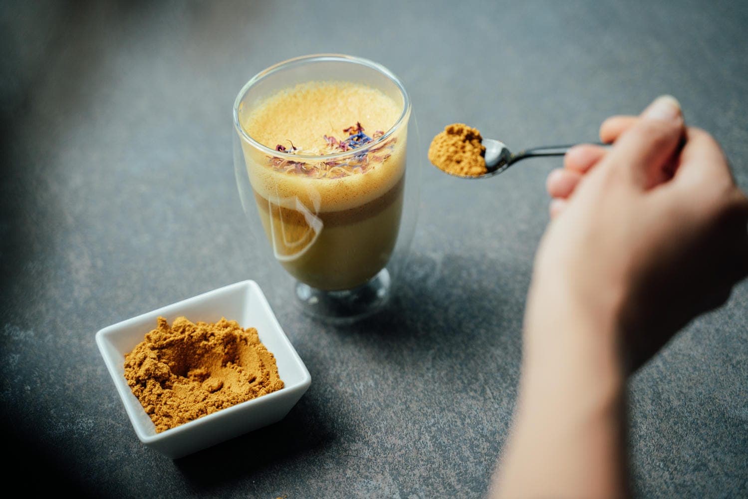 Složení doplňuje sušené kokosové mléko, které zlepšuje chuť i vstřebávání aktivních látek, a vyvážená kombinace koření jako kardamon a skořice – známých svým pozitivním vlivem na trávení a hladinu krevního cukru. Všechny ingredience byly pečlivě vybrány a jejich účinky konzultovány s odbornou vědeckou radou. Výsledkem je senzoricky vyladěná, jemně pikantní směs vhodná pro každodenní použití – od zlatého mléka a latte až po slané recepty.